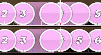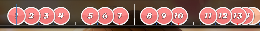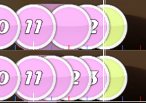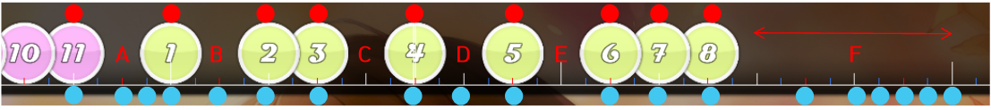 보컬을 액티브로 두고 보니, 리듬이 눈에 띄게 비어있는 곳이 보입니다. 바로 10번 서클과 그 다음 1번 서클 사이입니다. 인세인 이상에서, 그것도 곡의 하이라이트 부분에서 이 정도로 두 박자 이상의 큰 갭(gap)은 크게 어울리지 않을 수 있습니다.